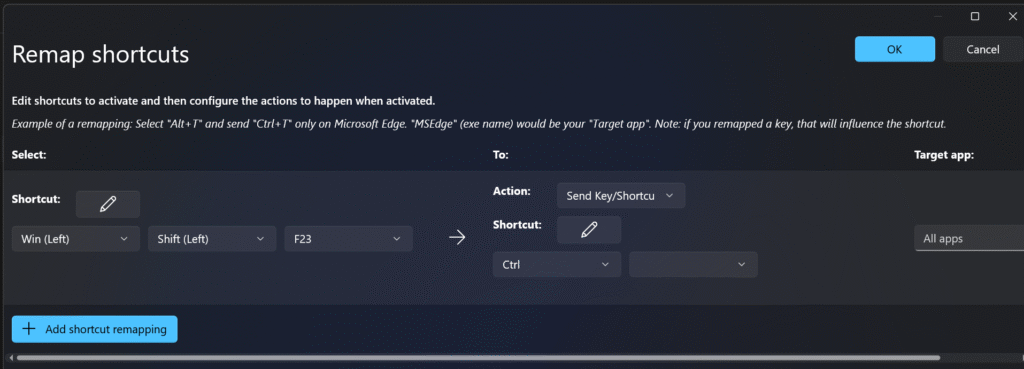 - Win (Left) 、Shift (Left)、F23と表示されたらOKをクリック